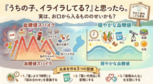 こんなお話、「あるある」だと思います。実はこの“イライラ”、お子さんの性格ではなく 「血糖値」 が関係しているかもしれません。